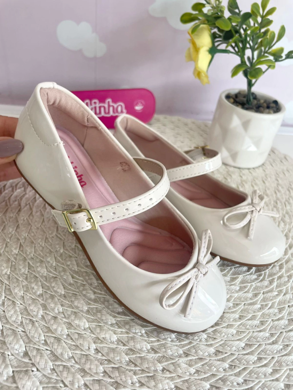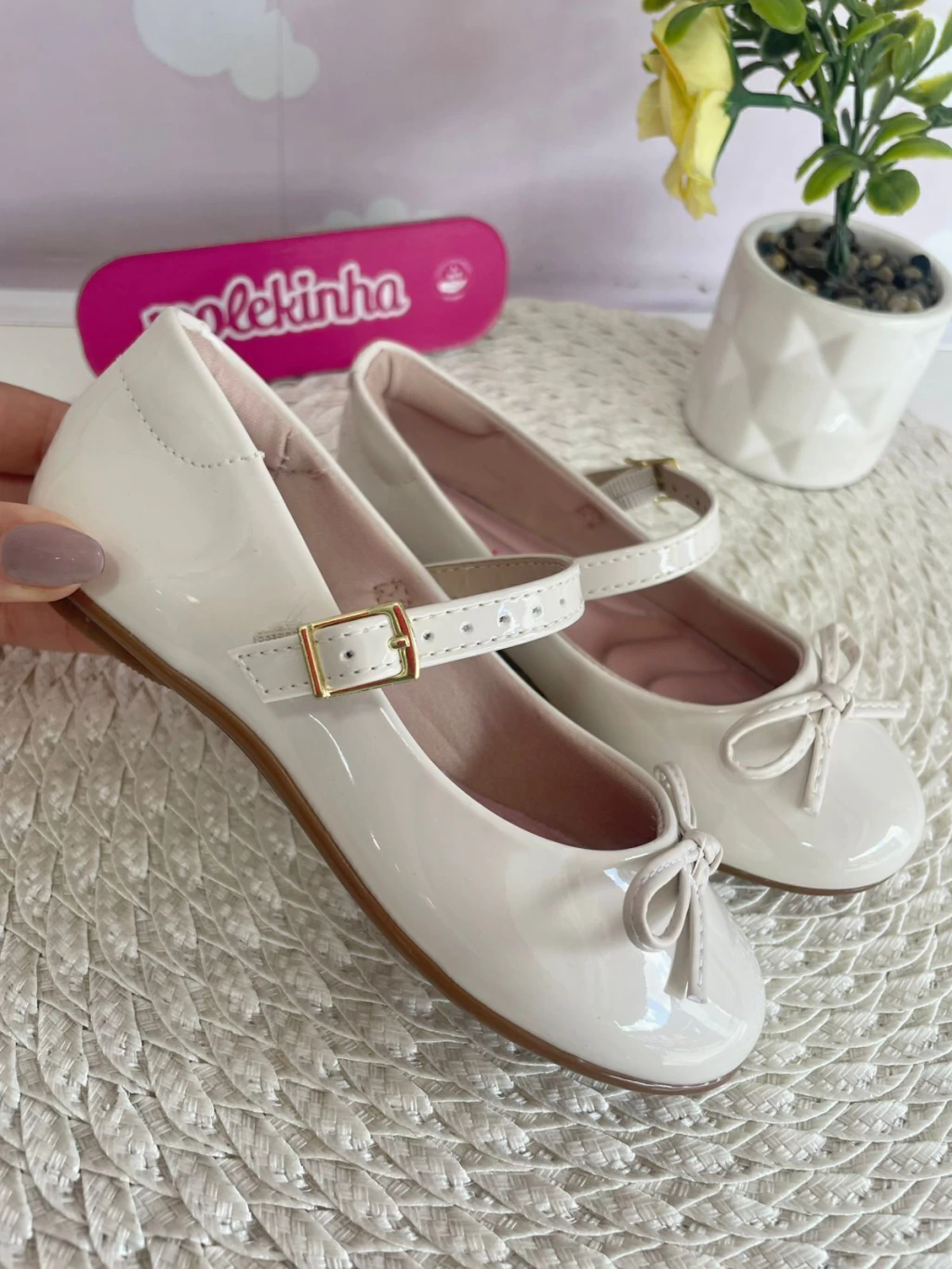 Em verniz, detalhe em laço